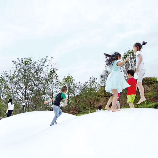 A 充氣彈跳床是采用耐沖擊、高密度、抗紫外線的PE加工而成的,等到充完氣之后就是充氣彈跳床了,彈性很好,大人小孩都能使用。